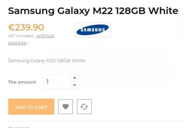Один из розничных продавцов уже включил Galaxy M22 в свой каталог