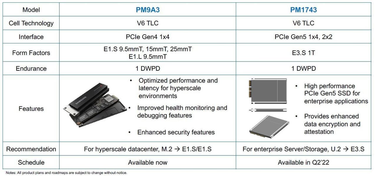 Компания Samsung недавно предоставила некоторые подробности о своем твердотельном накопителе PM1743 PCIe Gen 5 E3.S 1T EDSFF, который будет выпущен во втором квартале 2022 года. Он относится к корпоративному сегменту. Накопитель оснащён интерфейсом PCIe 5.0 x4, который может обеспечить теоретическую максимальную скорость 15,7 ГБ/с.