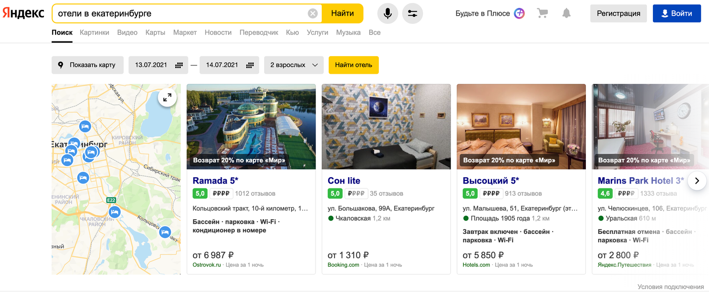Универсальные обогащённые ответы показывают информацию сразу из нескольких источников. Например, по запросу «авиабилеты в Сочи» Яндекс покажет рейсы разных авиакомпаний — с ценой и расписанием. Человек сможет быстрее решить свою задачу, а компании, предлагающие товар или услугу, — привлечь клиентов».