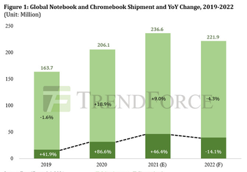 Аналитики TrendForce прогнозируют, что за год будет отгружено 236 млн мобильных ПК