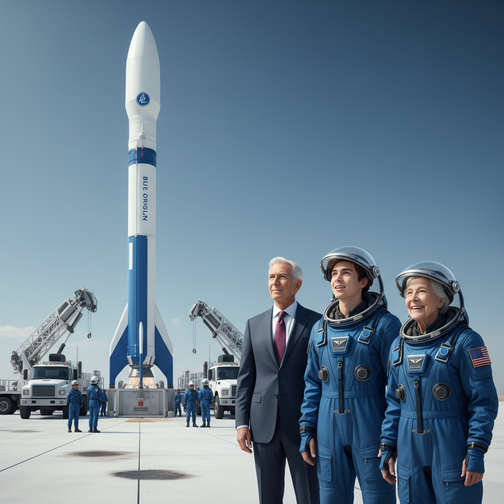 Ранее было объявлено, что вместе с Безосом полетят его брат и 82-летняя Уолли Фанк (Wally Funk), участница программы подготовки женщин-астронавтов «Меркурий 13» (Mercury 13). Оливер Дэмен и Уолли Фанк станут самыми молодым и старым людьми, которые когда-либо отправлялись в космос.