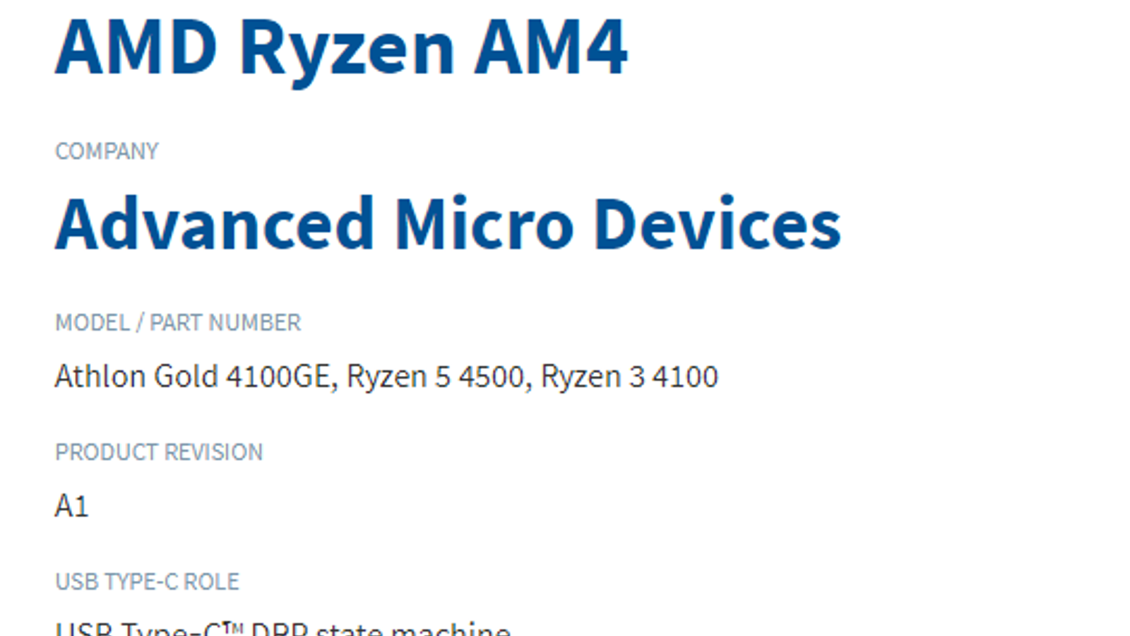 В базе данных USB Implementers Forum засветились три перспективных процессора AMD — Ryzen 3 4100, Ryzen 5 4500 и Athlon Gold 4100GE. Никаких характеристик и цен нет, но можно не сомневаться как минимум в двух вещах: эти модели основаны на архитектуре Zen 2 и дорогими точно не будут.