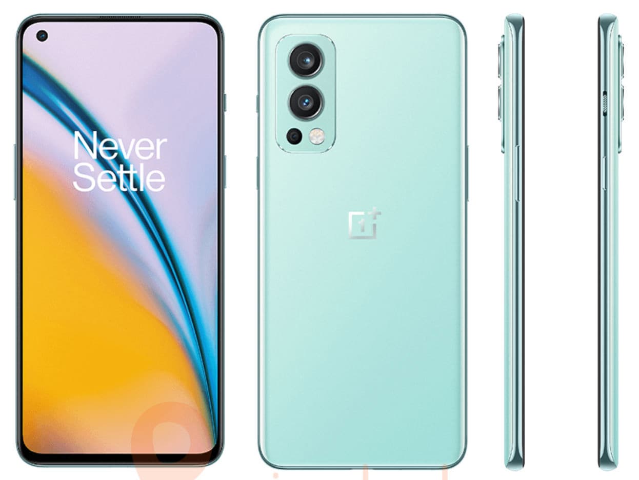 На изображениях представлен OnePlus Nord 2 в двух цветах – сером и зеленом, но буде еще один вариант – синий. Эта модель построена на SoC MediaTek Dimensity 1200 и оснащена экраном AMOLED диагональю 6,43 дюйма разрешением Full HD+ с кадровой частотой 90 Гц. Фронтальная камера – с датчиком разрешением 32 Мп (Sony IMX616), а в основной камере применяются датчики разрешением 50 (Sony IMX766), 8 и 2 Мп.