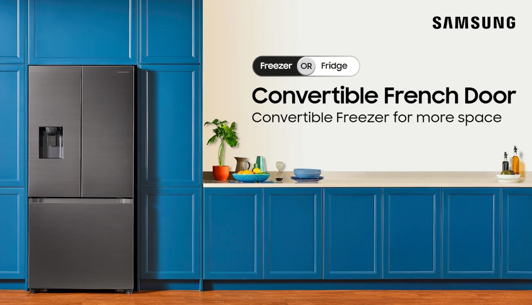 Корейский технологический гигант Samsung представила новейшие трехдверные трансформируемые холодильники с французскими дверьми большой емкости с расширенными функциями охлаждения и замораживания. Холодильники также имеют 4-литровый диспенсер для воды, который позволяет наливать охлажденную воду, не открывая холодильник.