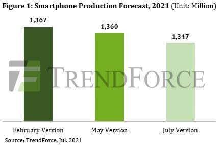 Учитывая сокращение поставок во втором квартале, и прогнозируя, что отрицательные факторы продолжат действовать во втором полугодии, специалисты TrendForce понизили прогноз выпуска смартфонов в 2021 году в целом с 1,36 до 1,35 млрд единиц. Более того, аналитики не исключают, что мировое производство смартфонов может еще больше сократиться в текущем квартале, поскольку пандемия в Юго-Восточной Азии не затихает. В результате может также уменьшиться спрос на смартфоны в таких странах региона, как Индонезия, Малайзия и Таиланд.