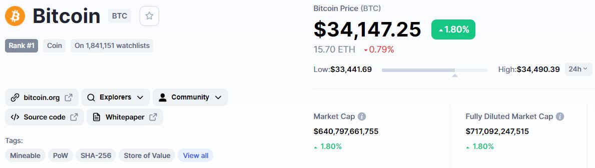 Эта неделя – одна из самых противоречивых для владельцев Bitcoin: если в начале ее главная криптовалюта мира сильно просела, опустившись впервые за долгое время ниже отметки в 30 000 долларов, то уже в среду наметился стабильный рост, и он продолжается: на данный момент стоимость Bitcoin превысила отметку в 34 000 долларов.