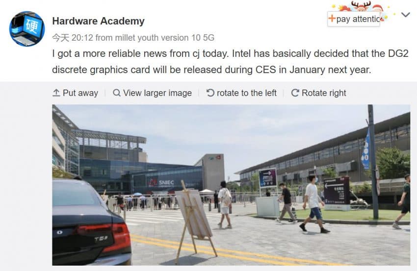 Источник утверждает, что компания Intel собирается представать на выставке CES семейство графических процессоров DG2. Выставка CES 2022 пройдет в январе следующего года.