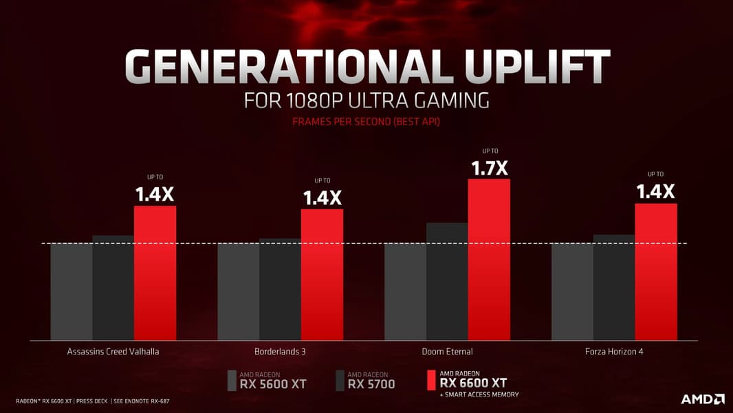 Сегодня на мероприятии ChinaJoy AMD официально представила видеокарту Radeon RX 6600 XT — самую доступную модель нынешней линейки. Она предназначена для игр с разрешением монитора 1080p и в этой нише превосходит своего прямого конкурента –— GeForce RTX 3060: в среднем производительность Radeon RX 6600 XT на 15% выше. А если новинку сравнивать с предшественницей, RX 5600 XT, то она быстрее в 1,4–1,7 раза.