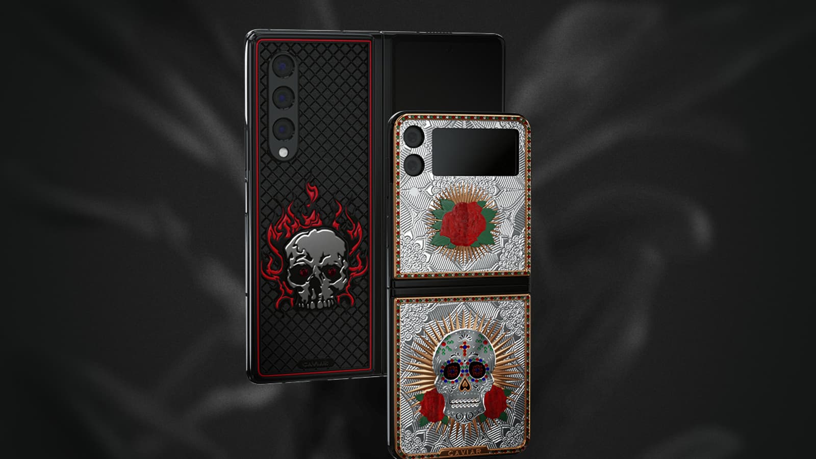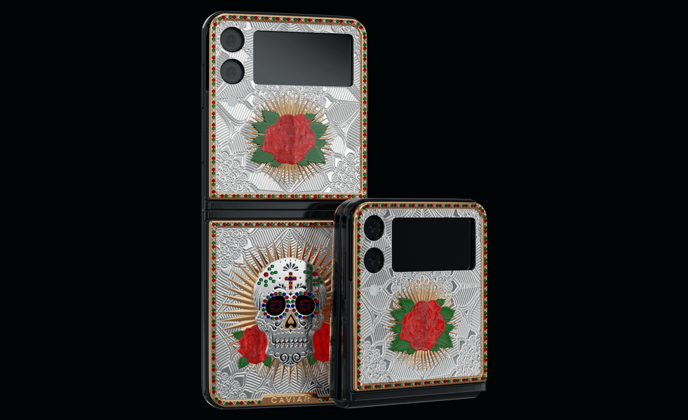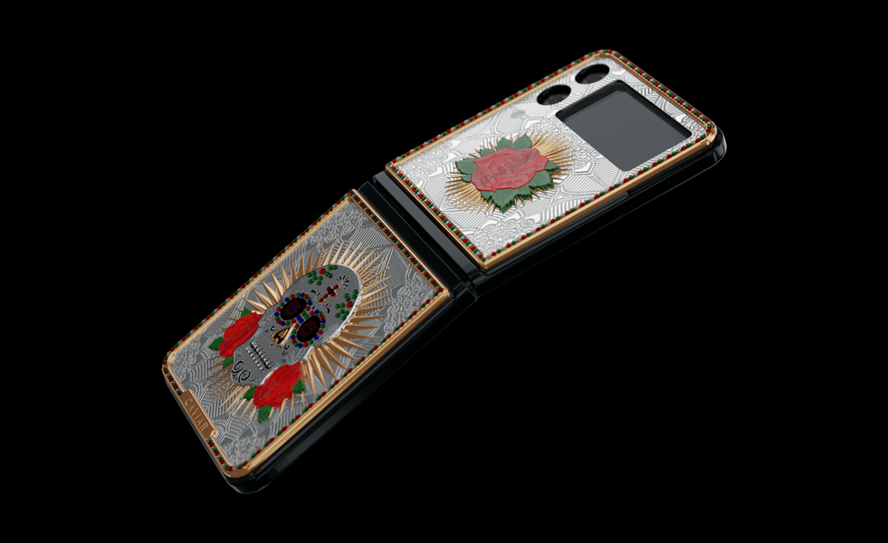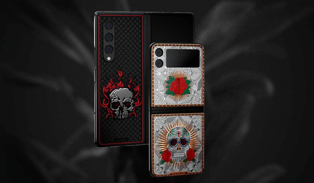 Возвращаясь к новенькой коллекции, можно отметить название Skull и драгоценные черепа в отделке. В серию вошли две модели — Catrina Calavera, на базе Galaxy Z Flip 3, и Ragnarok, основой для которого стал Galaxy Z Fold 3.