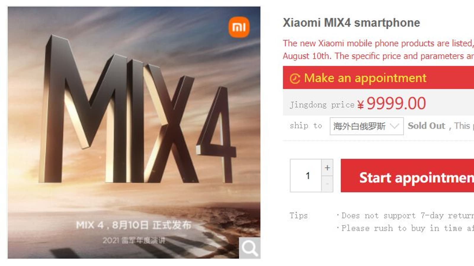 Сегодня Xiaomi опубликовала первый официальный тизер нового флагмана Mi Mix 4, и сегодня же на сайте JD.com открылась страничка с предзаказами. Увы, стоимость пока не сообщается, вместо неё — стандартная заглушка с указанием цены в размере 9999 юаней. В реальности Mi Mix 4 будет дешевле — его стоимость ожидается на уровне Mi 11 Ultra, то есть около 6000 юаней (930 долларов).
