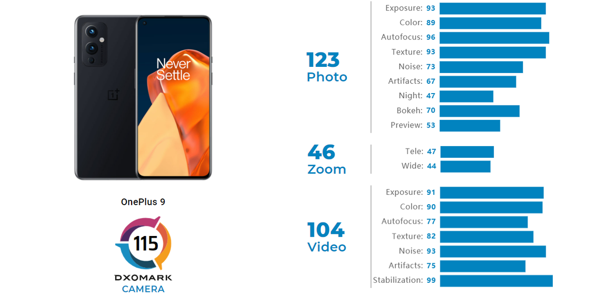 Смартфон OnePlus 9 попал в руки DxOMark, где специалисты оценили его камеру. И оценили они её на 115 баллов.
