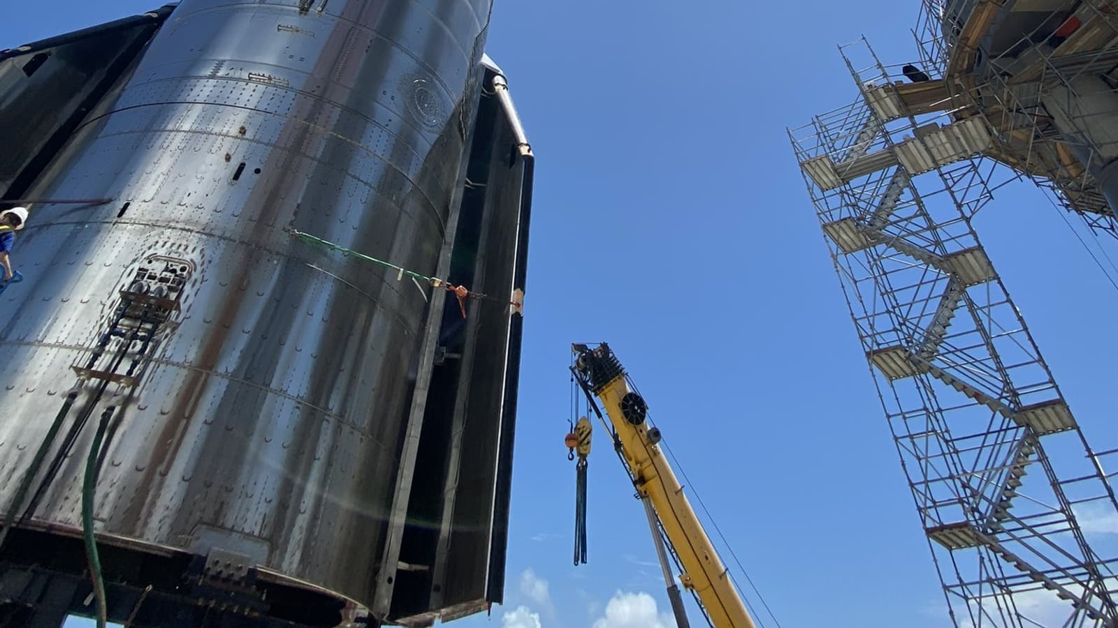 Вчера вечером, около 22:00 мск, Илон Маск опубликовал фотографию, которая подтверждает, что Starship и Super Heavy уже находятся рядом друг с другом. Он добавил, что команда полна решимости установить Starship на ракету в тот же день.