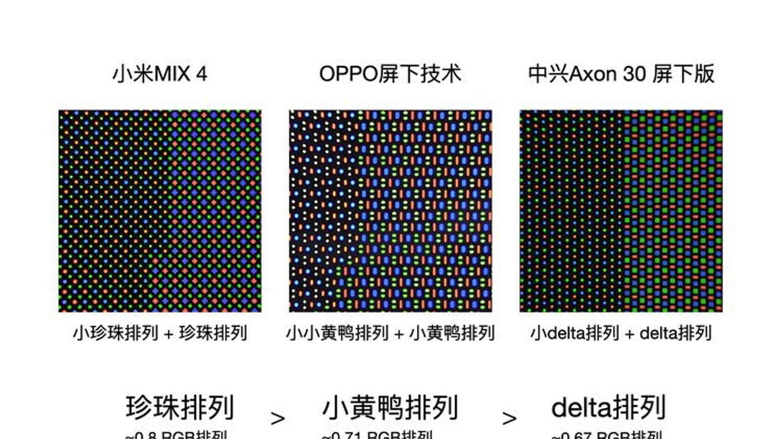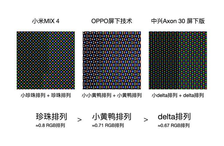 Проверенный информатор под ником Ice Universe утверждает, что в смартфоне Xiaomi Mi Mix 4 реализована лучшая подэкранная селфи-камера на рынке. Он также опубликовал макроснимки, демонстрирующие расположение пикселей в области подэкранной камеры и в остальной части дисплея.