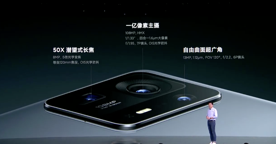 Основная камера на задней панели получила главный датчик ISOCELL Bright HMX разрешением 108 Мп разрешением 108 Мп оптического формата 1/1,33 дюйма с широкоугольным объективом из семи элементов и системой оптической стабилизации, 8-мегапиксельный перископный телефото модуль, обеспечивающий 50-кратный цифровой зум и 5-кратный оптический зум, и широкоугольный модуль на 13 Мп с углом обзора 120°.