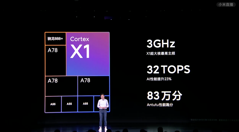 В основе лежит новая платформа Qualcomm Snapdragon 888+ с частотой до 3 ГГц. Оперативная память – LPDDR5 со скоростью 6400 Мбит/с, флеш-память – UFS 3.1.