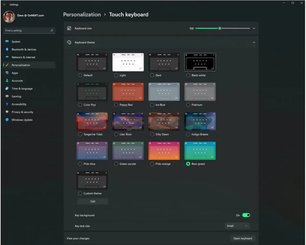 Во-вторых, пользователи теперь могут менять размер виртуальных клавиш. Это очень важно, так как пальцы у всех разные, и не всегда удобно попадать по виртуальным клавишам стандартного размера. Наконец, в Windows 11 к виртуальной клавиатуре можно применить массу тем оформления – и настроить ее таким образом под свои визуальные предпочтения.