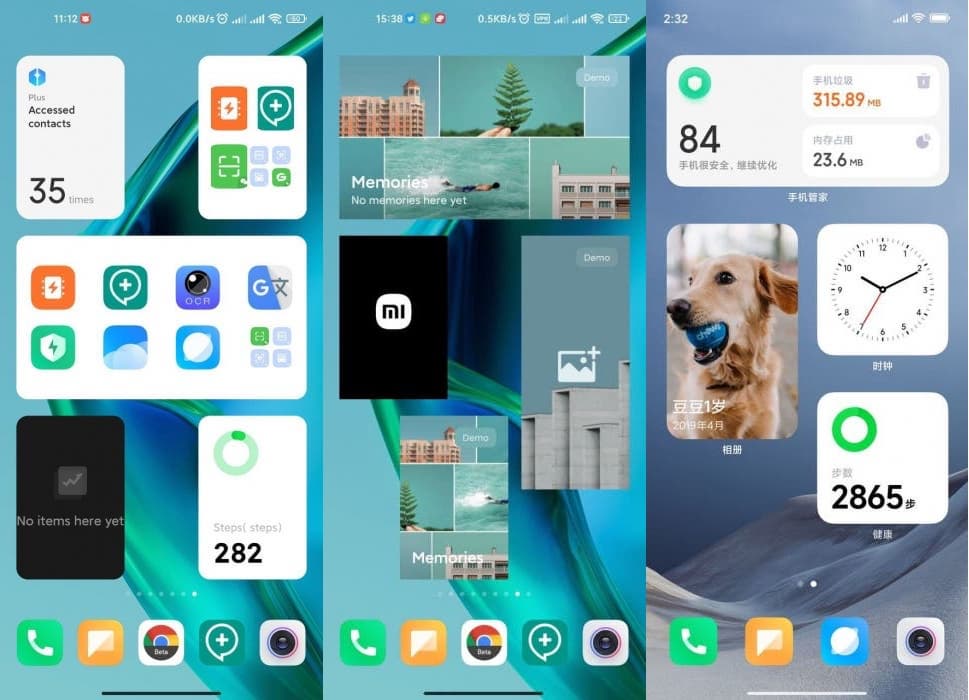 Первыми новую систему виджетов смогут протестировать пользователи китайской версии MIUI. Среди основных изменений — новые варианты сетки 2 х 2, 4 х 2, 4 х 4 и 2 х 3, четыре размера виджетов, магазин виджетов, богатый ассортимент системных виджетов для управлением памяти, часов, здоровья, и так далее, а также свободное перетаскивание и сортировка виджетов.