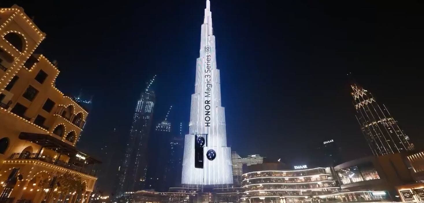Недавно компания Honor анонсировала флагманскую серию смартфонов Honor Magic3, а теперь появился видеоролик, в котором показывается, как новинки рекламируют на фасаде небоскреба Бурдж-Халифа.