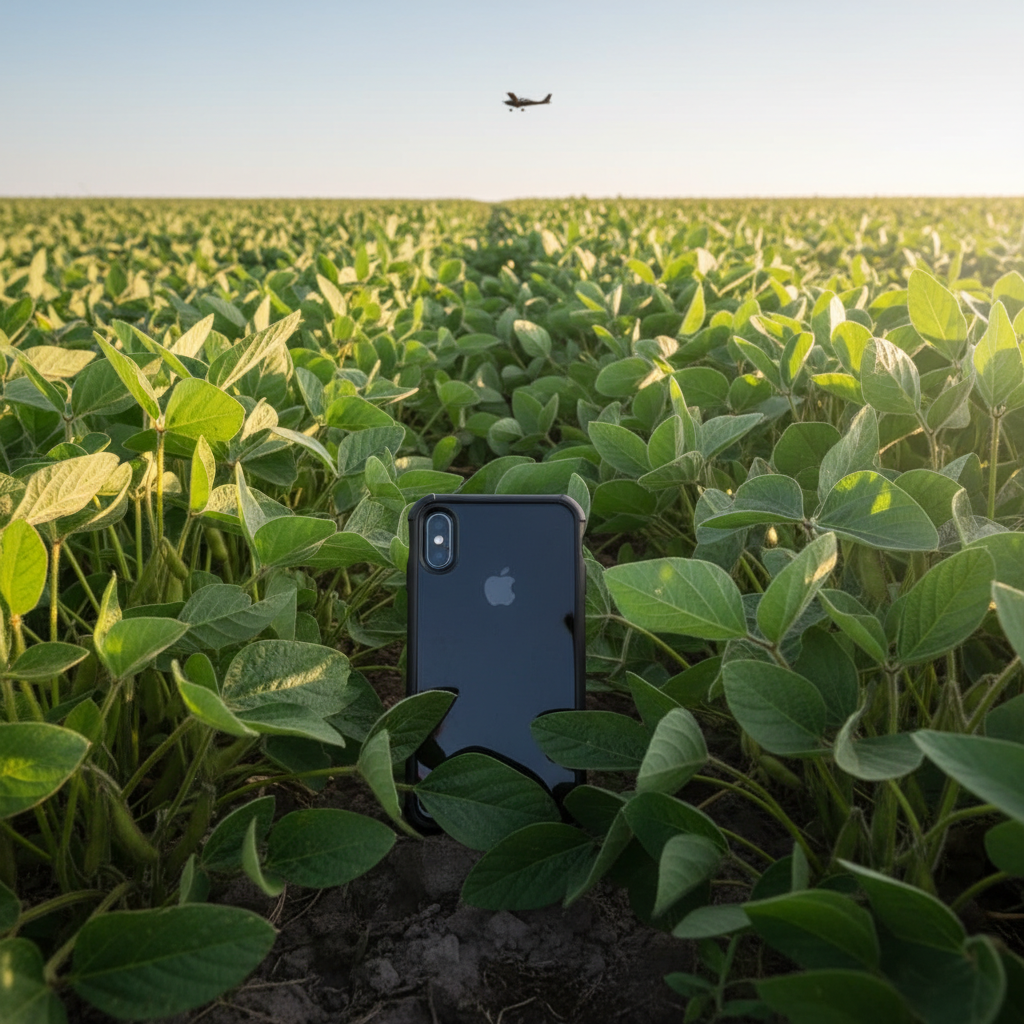 Было решено отправиться на то место, чтобы попытаться найти смартфон. Оказалось, что аппарат упал в поле, где росли соевые бобы. Кусты были высотой по пояс, что затрудняло поиски. Сам iPhone к тому моменту разрядился, поэтому сигналов не подавал.