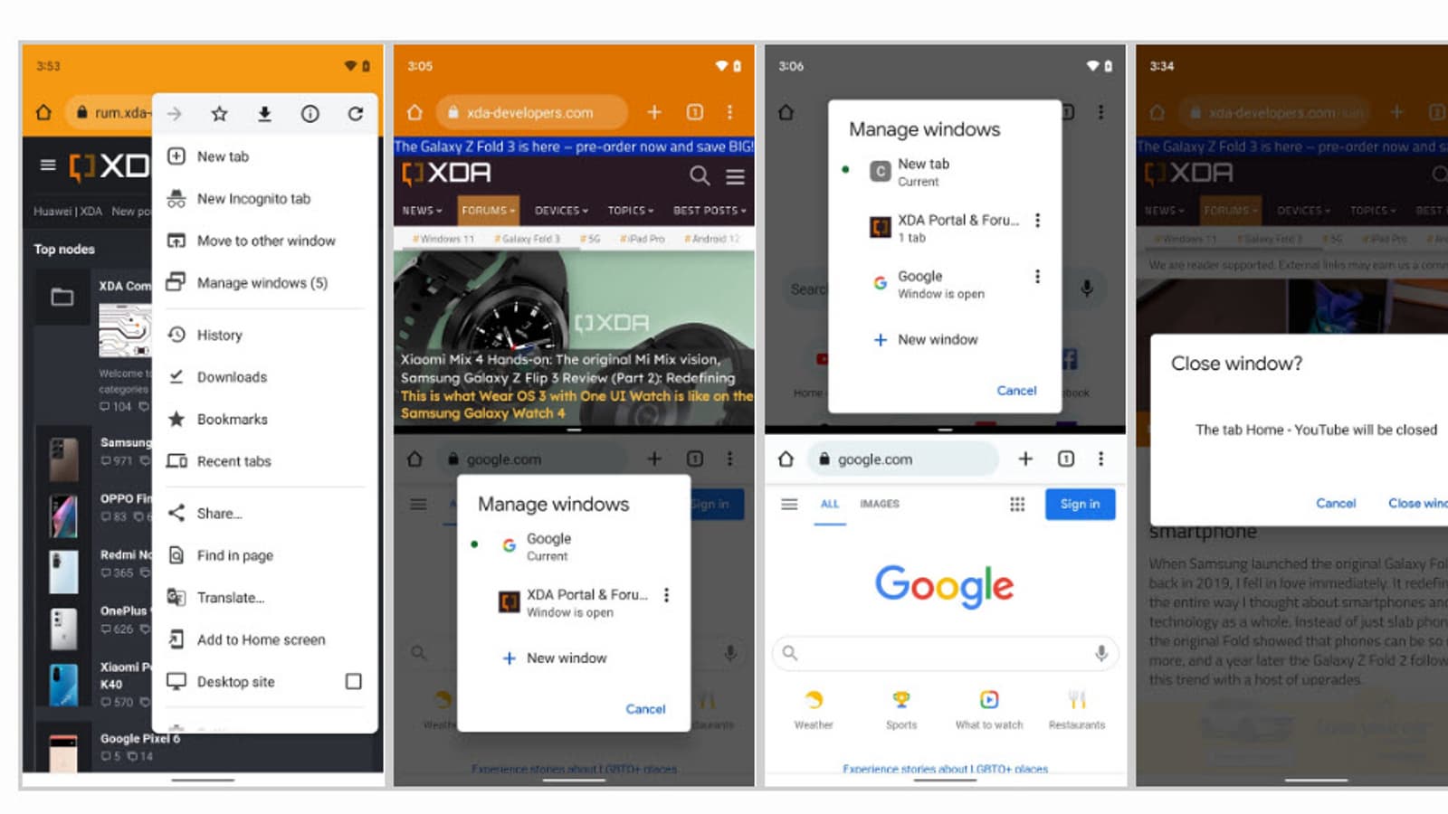 Как сообщает XDADevelopers, в коде браузера уже появились изменения, которые помечены меткой multi-instance и были отправлены в Chromium Gerrit. Эти новые изменения добавляют кнопку «Новое окно» (new window) в контекстное меню Google Chrome всякий раз, когда устройство переходит в режим разделения экрана. Это приглашение открыть «Новое окно» позволяет пользователям запускать новый экземпляр браузера на другой половине экрана. Второй экземпляр Chrome также открывает контекстное меню, которое обновляется кнопкой «управлять окнами», где перечислены все активные окна.