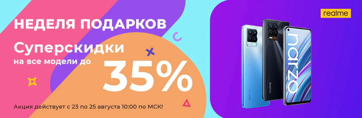 - Realme 8 6/128 ГБ за 15 990 вместо 23 990 рублей