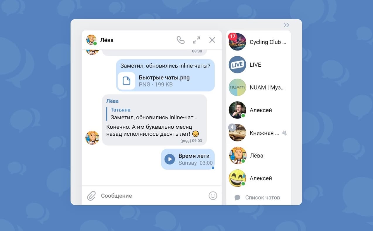 - Позвонить собеседнику теперь можно прямо из быстрого чата.