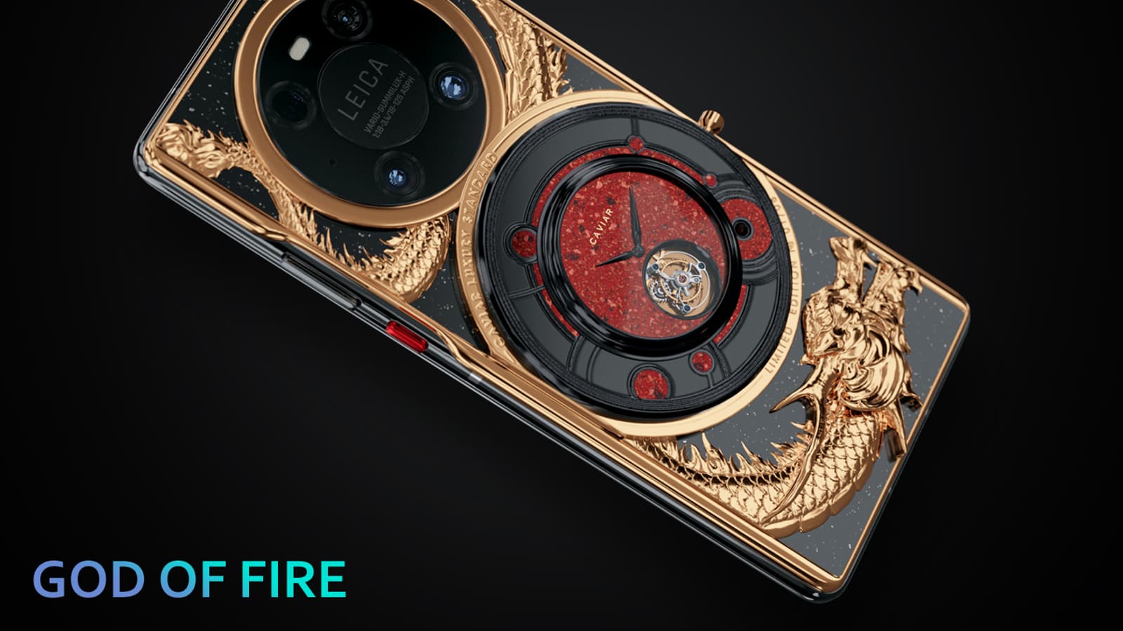 Флагманская модель, получившая название Gold of Fire, получила тяжёлое PVD-покрытие и сложную объёмную скульптуру, изображающую Огненного Дракона Чжу Чжуна — бога огня и покровителя Марса в китайской мифологии. Дизайнеры Caviar также разместили драгоценные механические часы с турбийоном на задней панели Mate 40 Pro.