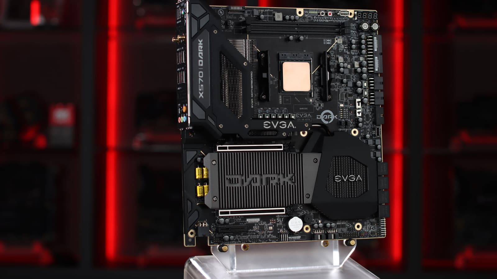 Известный оверклокер Kingpin опубликовал первое изображение серийной системной платы EVGA X570 Dark. Это флагманская модель с разъёмом AM4, предназначенная для разгона новейших процессоров AMD на архитектуре Zen 3. По словам источника, разработчики платы явно отдали приоритет разгону процессора и памяти. В частности, процессорный разъём повёрнут на 270°, что улучшает охлаждение жидким азотом. На каждый канал памяти приходится только один модуль DIMM, что является оптимальной топологией для разгона памяти. Разъёмы питания, встроенные кнопки, переключатели, индикатор кодов POST и точки измерения напряжения удобно расположены в правом верхнем углу печатной платы. Разъёмы питания сделаны угловыми, чтобы кабели походили к плате сбоку.
