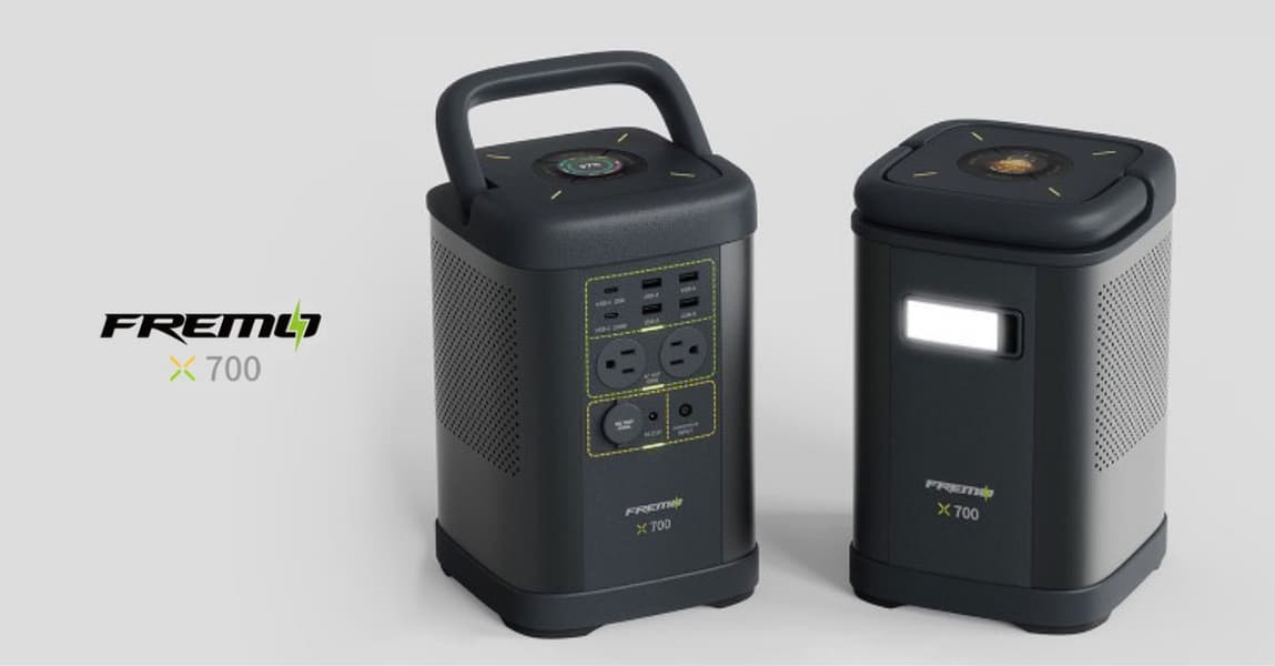 Созданная в прошлом году компания Fremo анонсировала выпуск портативных аккумуляторных батарей Fremo X700 и Fremo X700 Pro. В них используются аккумуляторы LiFePO 4. Как утверждается, Fremo X700 Pro — самая компактная портативная «электростанция» ёмкостью 700 Вт·ч. Габариты источника питания равны 184 x 184 x 289 мм, масса — 7,9 кг. Он рассчитан на непрерывную потребляемую мощность 1000 Вт, а пиковая мощность может достигать 1600 Вт. Одновременно можно питать до десяти устройств. Модель Fremo X700 характеризуется ёмкостью 662 Вт·ч, непрерывной мощностью 600 Вт и пиковой 1200 Вт.