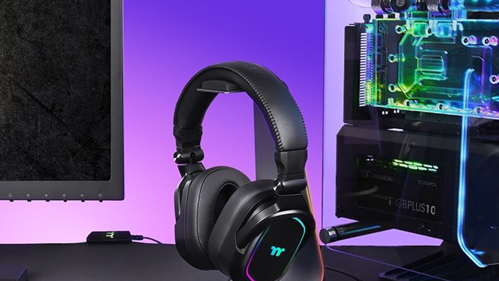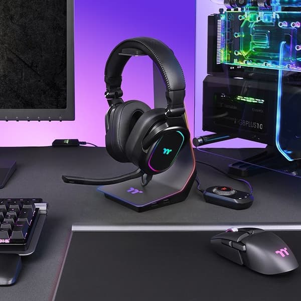 Блок управления подключается к компьютеру по USB, а гарнитура оснащена разъёмом диаметром 3,5 мм. Она весит 359 г. Гарнитура совместима с ПК, Mac, Xbox One, PS4, Nintendo Switch и мобильными устройствами, а также с программным обеспечением iTAKE Engine, TT RGB PLUS, Razer Chroma.