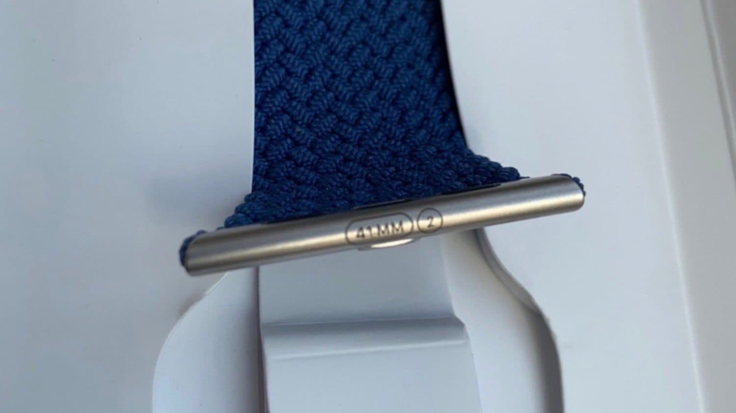 В качестве доказательства прилагается фото ремешка Solo Loop, который в России называется «Монобраслет». На снимке ремешок для модели на 41 мм соответствует размеру 2 — монобраслеты предлагаются в размерах от 1 до 10, поскольку не имеют застёжки.