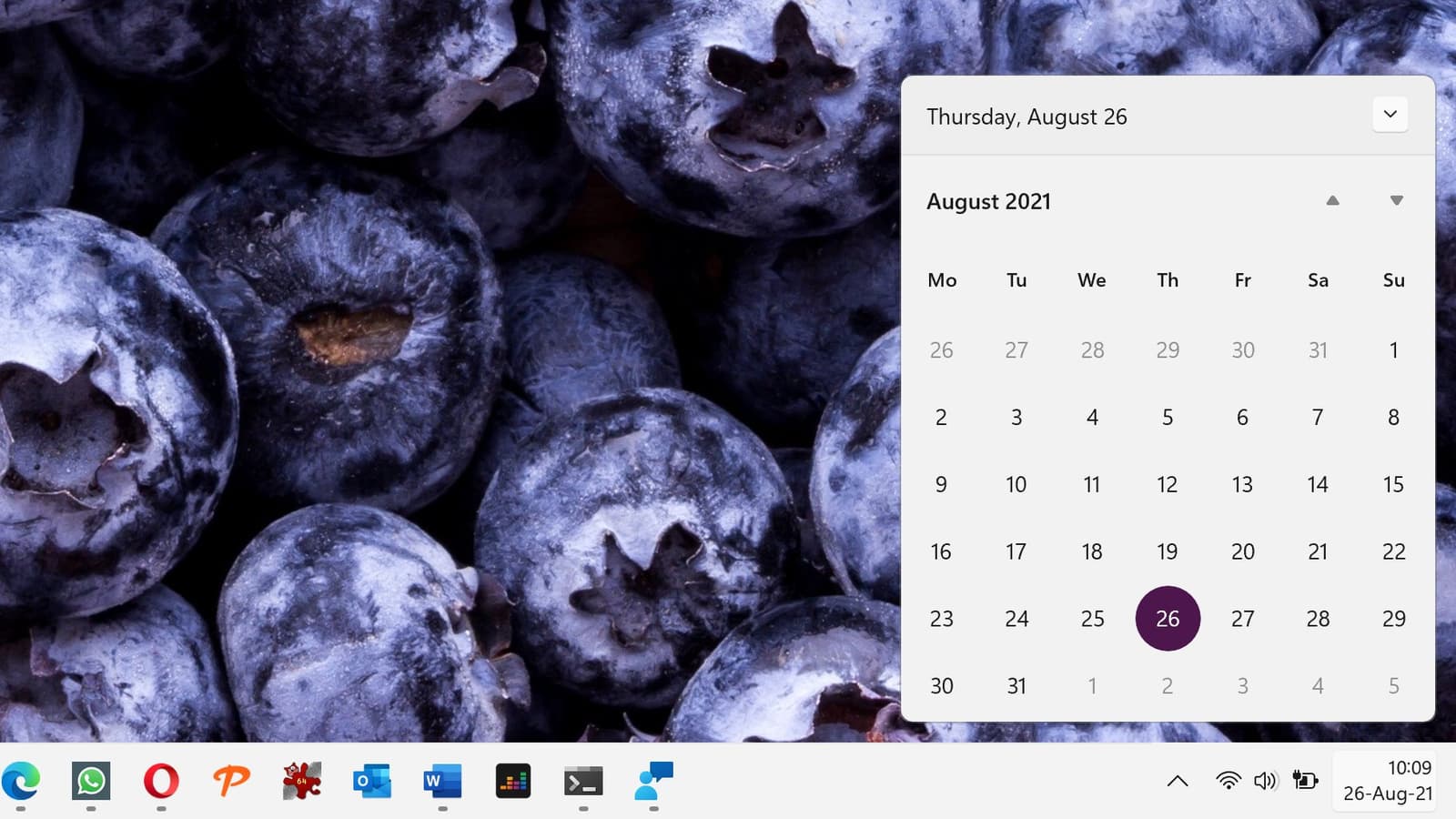 В Windows 10 пользователь может нажать на значок часов в правой части панели задач, чтобы открыть всплывающее меню календаря. Эта панель интегрирована со стандартным приложением «Календарь» в Windows 10 и позволяет добавлять события в календарь, который синхронизируется между устройствами, подключёнными к одним и тем же учётным записям Microsoft, Outlook или Exchange.