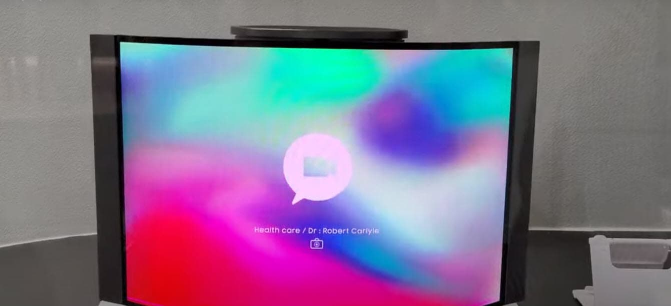 В обычном состоянии это цилиндр, который получил 12,4-дюймовую гибкую OLED-панель, обёрнутую вокруг него. При необходимости экран может распрямиться (но не полностью), а пользователи получат удобный дисплей для видеосвязи или просмотра фильмов/клипов.