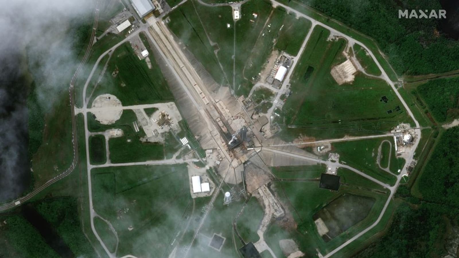 Тем временем за несколько часов до предполагаемого старта спутник WorldView-2 компании Maxar Technologies сделал впечатляющий снимок ракеты с кораблём в стартовом комплексе LC-39A.