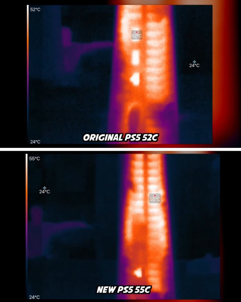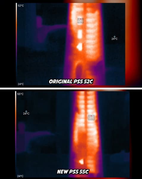 Обычно такие изменения не происходят бесследно, и так и есть: подсистема охлаждения стала компактнее, но консоль нагревается сильнее. Разница между старой и новой PlayStation 5 – 3-5 °C не в пользу новой версии. Впрочем, есть и плюс: приставка издает чуть меньше шума.