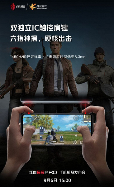 Red Magic 6s Pro получил экран OLED диагональю 6,8 дюйма с разрешением Full HD+. Кадровая частота не указана, но она составит 120 или 144 Гц, зато приводится частота реакции сенсорного слоя — 720 Гц. Будучи игровым смартфоном, Red Magic 6s Pro оснащён боковыми клавишами-курками, частота реакции которых — 450 Гц.