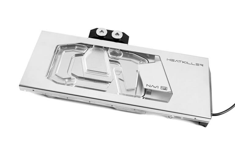 Компания Watercool выпустила водоблок Heatkiller V, совместимый с видеокартами AMD Radeon RX 6800, 6800 XT и 6900 XT. Он относится к водоблокам с полным покрытием и дополнен панелью, закрепляемой на тыльной стороне печатной платы. Отметим, что это не привычная плоская пластина, а фигурная конструкция, полностью скрывающая элементы на плате.
