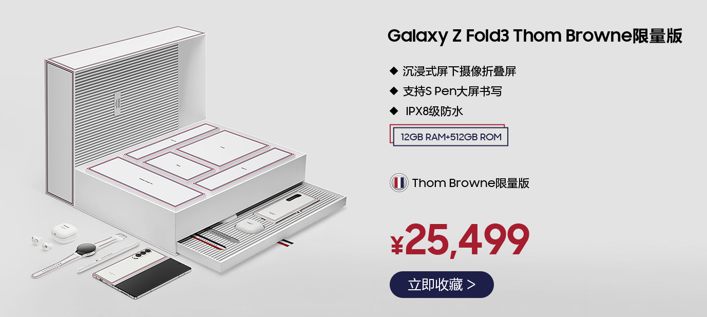 Сегодня утром ограниченная серия Samsung Galaxy Z Fold3 и Z Flip3 Thom Browne Edition официально поступили в продажу в Китае по цене 3950 и 2550 долларов соответственно.