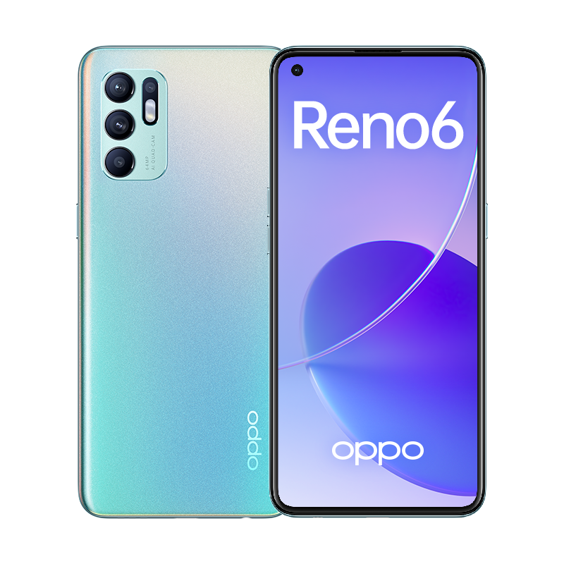 Oppo Reno6 оснащается экраном AMOLED диагональю 6,4 дюйма, разрешением Full HD+ и частотой обновления изображения 90 Гц, фронтальной камерой на 44 Мп, четверной основной камерой (64 Мп, 8 Мп, 2 и 2 Мп).