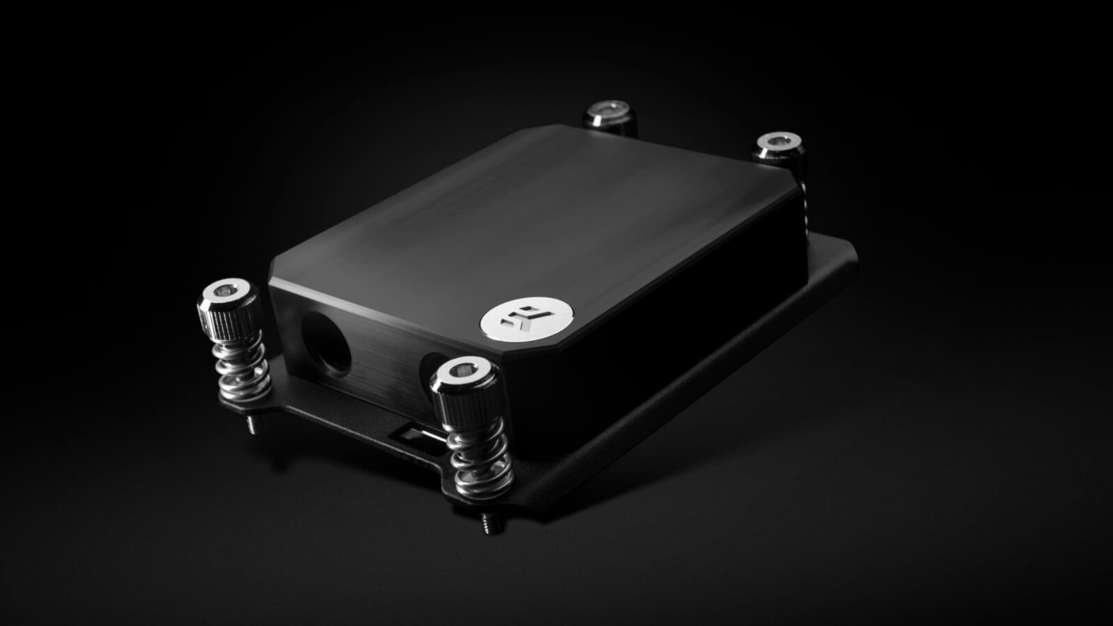 Водоблок спроектирован специально для процессора AMD Ryzen Threadripper, так что его основание по размерам точно соответствует теплораспределителю процессора. Основание изготовлено из меди и никелировано. На его внутренней стороне сформирован массив из 91 микроканала. Материалом крышки служит пластик POM. Водоблок EK-Pro CPU WB sTR Rack поставляется с предварительно собранным креплением, которое устанавливается непосредственно в монтажные отверстия SocketTR4. Для установки не нужно вынимать системную плату из корпуса.