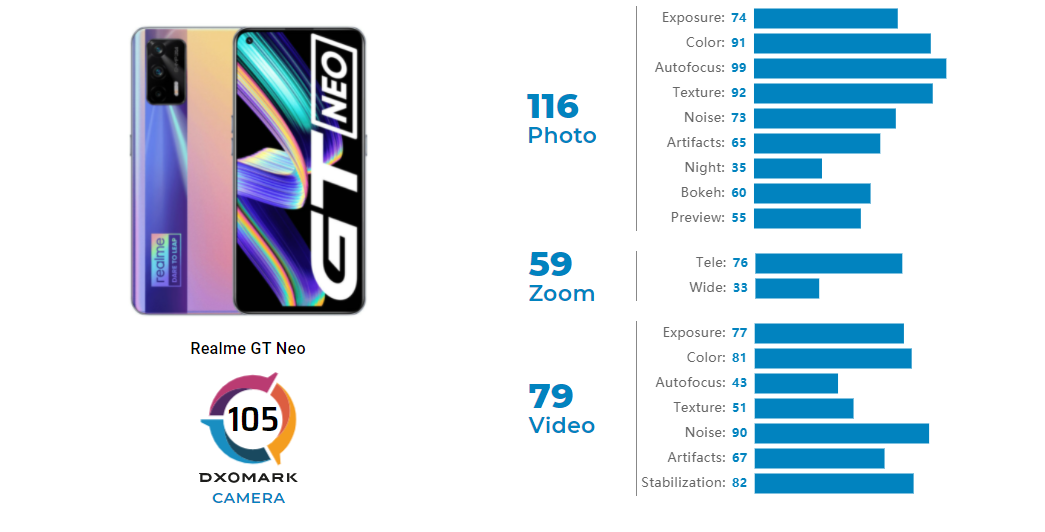 Realme GT Neo, благодаря топовой платформе и цене менее 300 долларов, быстро стал бестселлером компании. Теперь он добрался до лаборатории DxOMark, где её специалисты оценили камеру аппарата.
