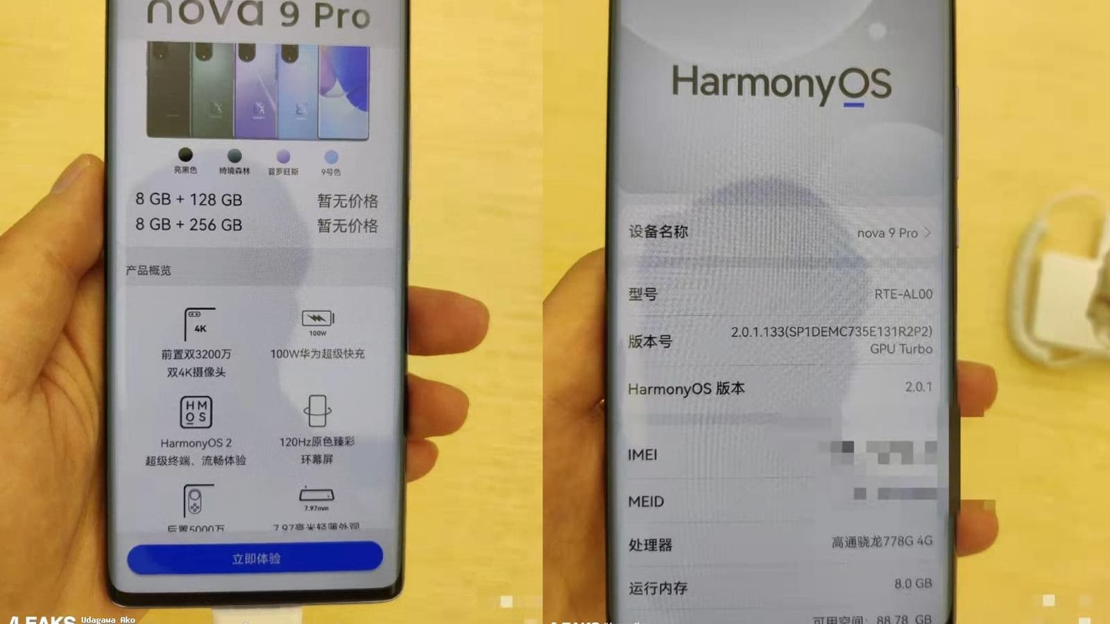 Huawei Nova 9 получит OLED-экран диагональю 6,57 дюйма, фронтальная камера будет 32-мегапиксельной, ёмкость аккумулятора составит 4300 мА•ч, при этом Nova 9 получит однокристальную систему Snapdragon 778G. Huawei Nova 9 Pro будет иметь 6,72-дюймовый OLED-дисплей FHD+, 32-мегапиксельную сдвоенную селфи-камеру, аккумулятор ёмкостью 4000 мА•ч и ту же платформу. Обе модели получат основную камеру с датчиками 50, 8, 2 и 2 Мп.