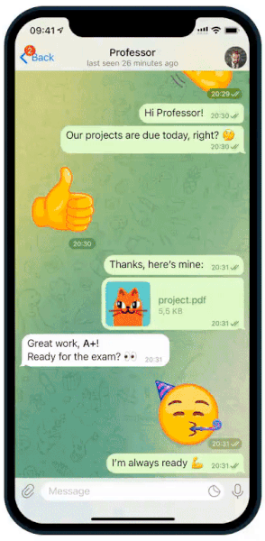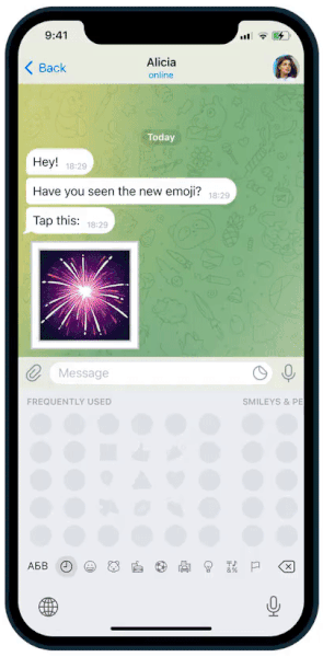С выпуском Telegram 8.0.1 пользователи могут нажать на некоторые анимированные эмодзи, чтобы запустить дополнительные эффекты на весь экран.