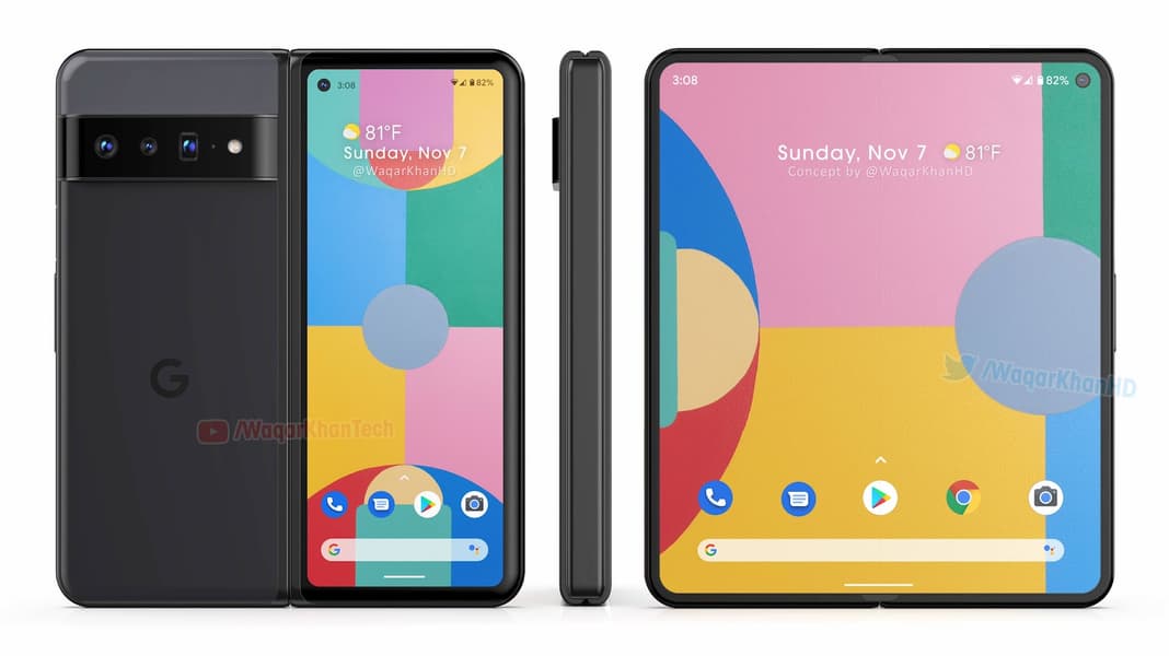Пользователь Twitter, часто публикующий концептуальные изображения различных мобильных устройств, представил свое видение перспективного складного смартфона Google Pixel Fold. О нём сейчас ходит очень много слухов: самые смелые пророчат премьеру Fold уже в октябре. Случится это или нет — пока вопрос, но если случится, то Google логично было бы сделать Pixel Fold похожим на Pixel 6 — это сократило бы время и ресурсы на разработку. И именно эту идею взял на вооружение Вакар Хан (Waqar Khan), создавая концептуальные изображения.
