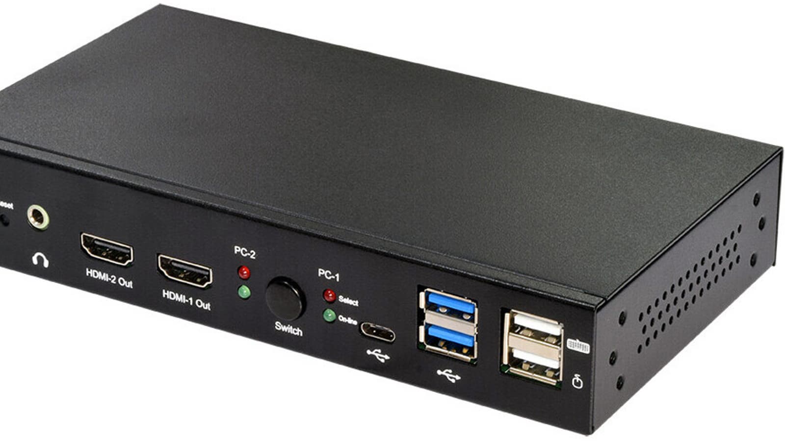 KC4K-223UHDA поддерживает разрешение видео до UHD 4K при 60 Гц (4:4:4) и соответствует стандарту HDCP 2.2 (High-Bandwidth Digital Content Protection). Для подключения к ПК есть вход DisplayPort и вход HDMI, а для подключения мониторов — два выхода HDMI. Кроме того, переключатель оснащён концентратором USB 3.2 Gen 1 (5 Гбит/с) с двумя портами USB Type-A и одним USB Type-C для переключения таких накопителей, принтеров, сканеров, веб-камер и других периферийных устройств между двумя компьютерами. Переключение можно выполнить кнопкой на передней панели или сочетанием горячих клавиш на клавиатуре. Устройство заключено в прочный металлический корпус и не требует установки какого-либо программного обеспечения.