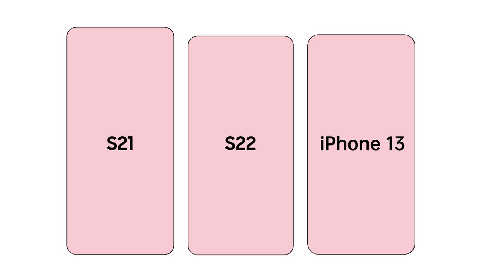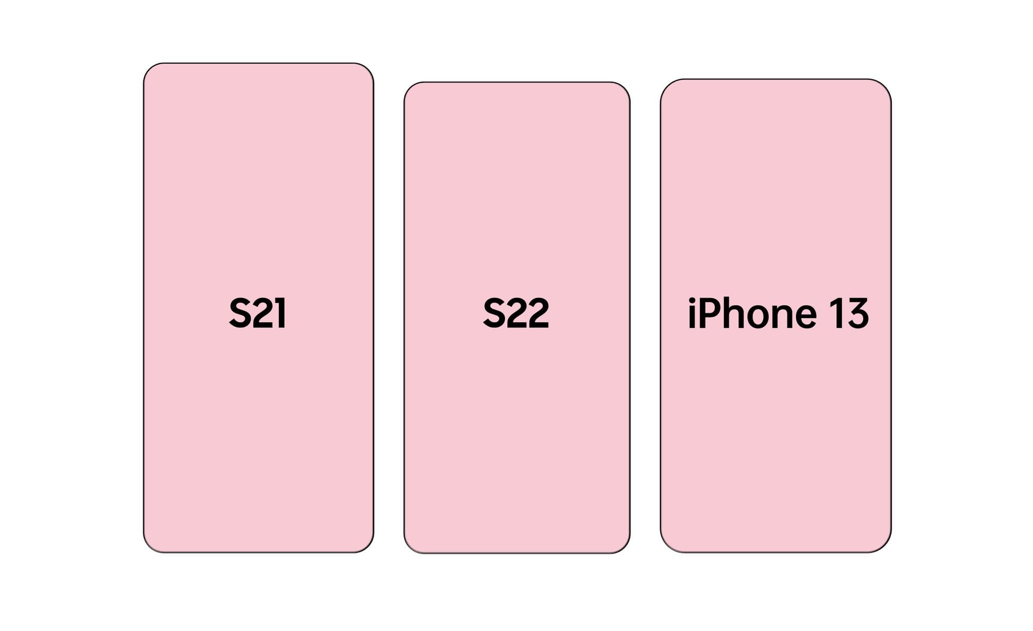 Как можно видеть, Galaxy S22 будет ощутимо меньше Galaxy S21 и немного компактнее iPhone 13. В последнем случае флагман Samsung будет чуть ниже и чуть уже, что объясняется в том числе чуть меньшим экраном: 6,06 против 6,1 дюйма.