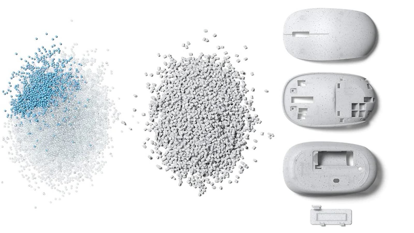 Наряду с планшетом Surface Pro 8 компания Microsoft представила мышь Ocean Plastic Mouse. Пластик, из которого изготовлен корпус этого устройства, на 20% состоит из переработанного океанического пластика. Так называют пластиковые отходы, извлечённые из мирового океана и переработанные в гранулы. Эти гранулы можно использовать как наполнитель при изготовлении деталей из нового пластика. Упаковка мыши вовсе не содержит пластика и пригодна для полной переработки.
