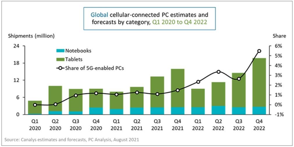 Специалисты аналитической компании Canalys изучили ситуацию на рынке мобильных компьютеров, к которым они относят ноутбуки и планшеты, и пришли к выводу, что переход на удалённую работу и учёбу резко повысил спрос на модели, оснащённые сотовыми модемами.