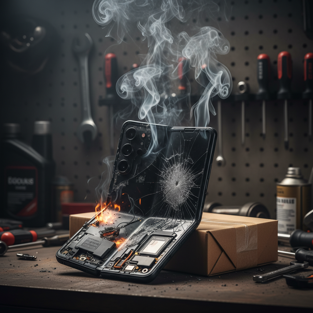 Владелец устройства признаётся, что за неделю до инцидента он уронил свой смартфон Samsung Galaxy Z Fold3 и обратился в сервисный центр, где ему посоветовали отправить телефон по почте в Samsung, чтобы его заменили на новый. При подготовке к отправке устройство взорвалось и задымилось.