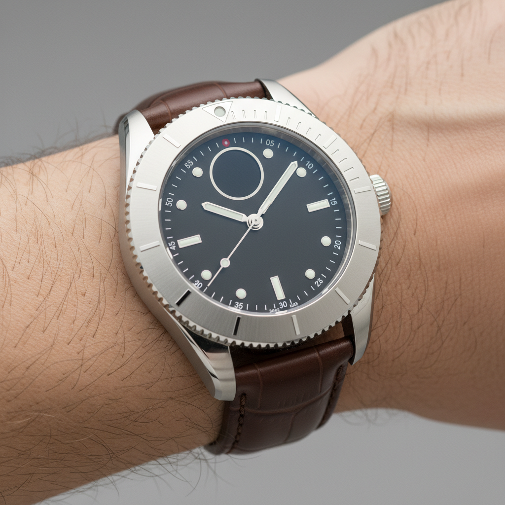 Корпус часов и вращающийся безель выполнены из нержавеющей стали, а циферблат прикрывает сапфировое стекло. А ещё тут люминесцентная отделка. При этом данная модель дайверам не подойдёт, так как уровень защиты от воды тут 10 ATM. То есть формально они могут выдерживать погружение на глубину до 100 метров, но фактически этот класс защиты подразумевает возможность плавать и нырять с маской и ластами, но не более. Полноценные дайверские часы имеют класс защиты 30 ATM.